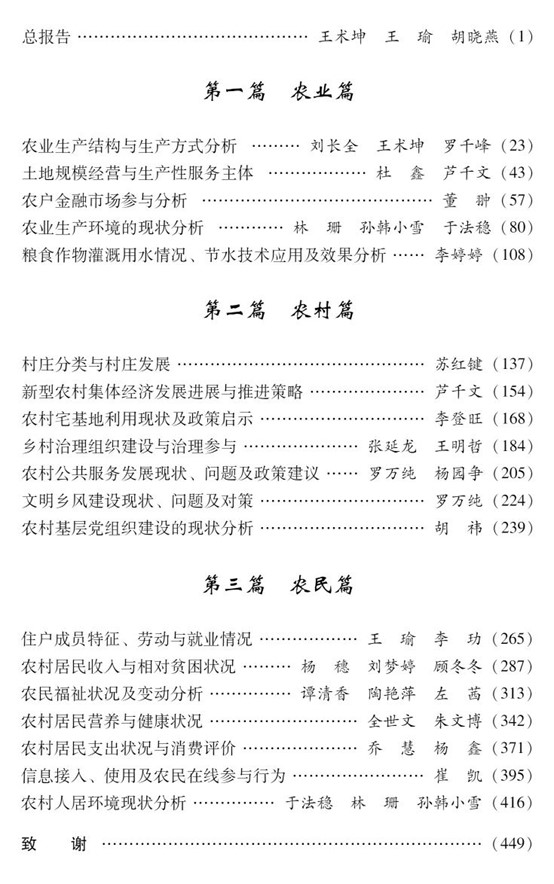 2023年中央农村工作会议上,习近平总书记强调,推进中国式现代化,必须坚持不懈夯实农业基础,推进乡村全面振兴。从乡村振兴的视角,深入开展农村调查,全面、客观、准确掌握农村基本情况和关键数据,科学把握当前农业农村发展变化趋势和面临的主要困境,并在此基础上提出可操作性强的政策建议,对于实现乡村全面振兴和农业农村现代化具有重要的意义。