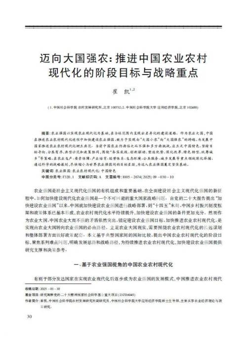 【关键词】农业强国;农业农村现代化;中国特色