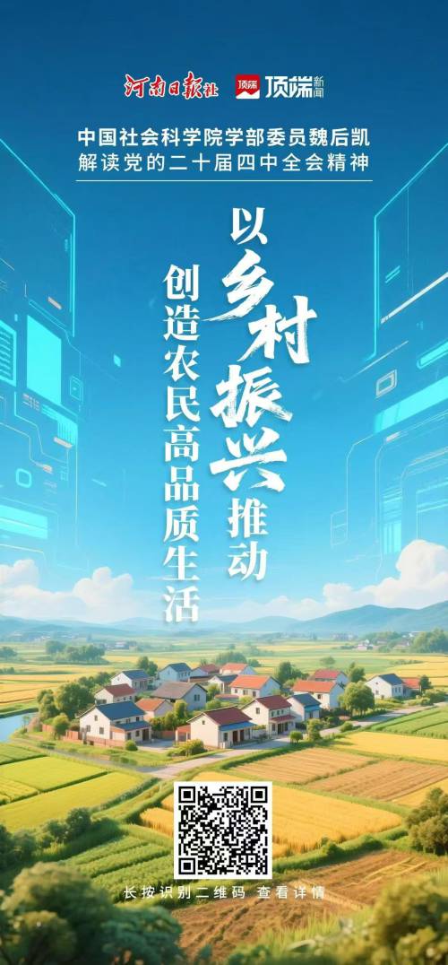 党的二十届四中全会通过的《中共中央关于制定国民经济和社会发展第十五个五年规划的建议》,对加快农业农村现代化、扎实推进乡村全面振兴作出了安排部署,提出加快补齐农村现代生活条件短板,创造乡村优质生活空间。目前,我国农村常住人口有4.65亿人,农村户籍人口超7亿人。新征程上,如何通过乡村振兴为广大农民创造高品质生活,是亟待研究解决的一个重大课题。“十五五”时期,作为农业大省和人口大省的河南应站在更高的起点上,扎实推进乡村全面振兴,不断提升农民生活品质,打造以乡村振兴推动创造农民高品质生活的河南样板。