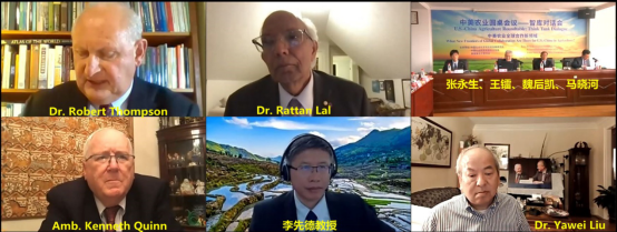在“国际合作与绿色发展”单元中,美国俄亥俄州立大学土壤科学教授、碳管理与固碳中心主任、世界粮食奖得主拉坦·拉尔(Rattan Lal)主要介绍了农业生态环境问题,提到人口和粮食产量的快速增长对气候变化具有较大影响,同时灌溉耗水和化肥使用也对环境和土壤造成影响。值得注意的是目前存在的水土流失造成的土壤退化、盐碱化、营养物质枯竭与失衡、荒漠化、过度放牧、景观退化、空气污染、温室气体排放、空气质量恶化、水体富营养化、农用化学品对水的污染和湿地排水转为耕地以及基于大量化石能源的投入,这些都增加了生态系统的碳含量。中美双方应就如何保护、恢复和合理管理土壤资源进行讨论。他提出几点建议:通过法律、联合国公约等进行监管;粮食安全研究要同时解决环境和资源管理问题;开展再生农业合作,进一步改良农作物品种;对进行土壤固碳行为的农民进行补偿,农民可以把固碳作为商品交易。