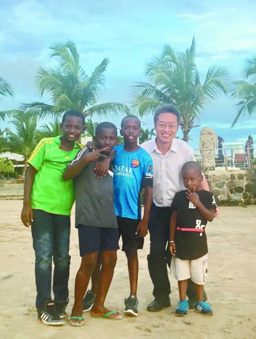 2016年,柳华文访问塞内加尔时与当地儿童在一起。受访者/供图